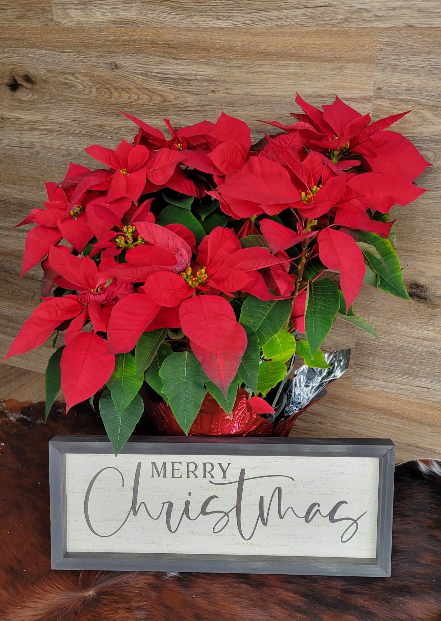A Large, Live Poinsettia. Perfect for a holiday piece, birthday arrangement, new home gift or a just because gift. *SIGN SOLD SEPERATLY*